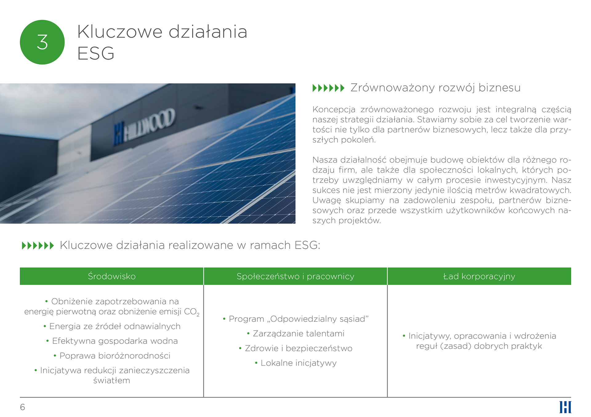 Projekt graficzny raportu ESG podsumowującego działania firmy Hillwood w obszarze środowiska, społecznej odpowiedzialności i ładu korporacyjnego. Publikacja stanowiła element komunikacji z interesariuszami.